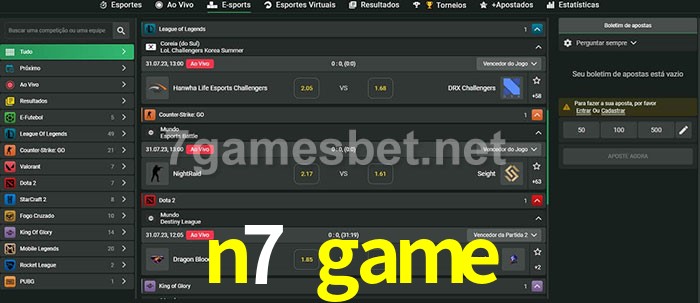 O n7 game oferece uma grande seleção de opções de apostas em e-sports com probabilidades competitivas